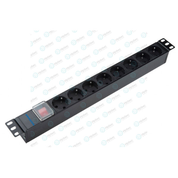 Блок розеток 19", 1U, 8 гнезд (Schuko), вход С14, 10А, с LED выкл., черн., без каб., DANNMAN 7000400
