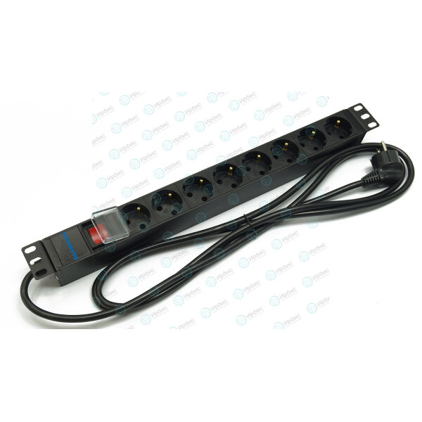 Блок розеток 19", 1U, 8 гнезд (Schuko), 16A, с LED выкл., черный, кабель 2,5м, DANNMAN 7000440