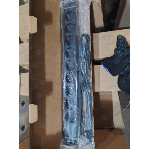 Блок розеток 19", 1U, 9 гнезд, 16A, с выкл.,кабель 2м, черный