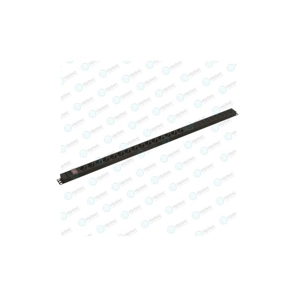 Hyperline SHE-15SH-10IEC-S-AIEC Блок розеток, вертикальный, 15 розеток Schuko, 10 розеток IEC320 C13, выключатель с подсветкой, без кабеля питания, входной разъем IEC320 C20 16A, 250В, корпус алюминий, черный