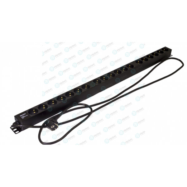 Блок розеток вертик. 19 гнезд (Schuko), 16А, черный, кабель 2,5м, Hyperline SHE-19SH-2.5EU