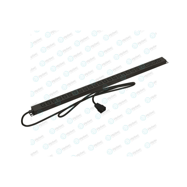 Hyperline SHE-20IEC-4BIEC-2.5AIEC Блок розеток, вертикальный, 20 розеток IEC320 C13, 4 розетки IEC320 C19, кабель питания 2.5м (3х1.5мм2) с вилкой IEC320 C20 16A, 250В, корпус алюминий, черный