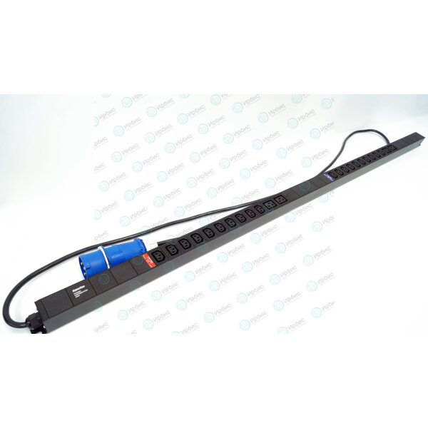 Hyperline SHE-20IEC-4BIEC-32-3PVB Блок розеток, вертикальный, 20 розеток IEC320 C13, 4 розетки IEC320 C19, кабель питания 3м (3х4.0мм2) с вилкой IEC 60309 32A (2P+E), 250В, корпус алюминий, черный