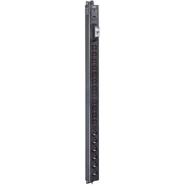Блок розеток вертик. 23U, 6 гнезд(Schuko)+12 гнезд, C13, 16А, кабель 3м, ITK BS-PV-43-12C13-06D-11