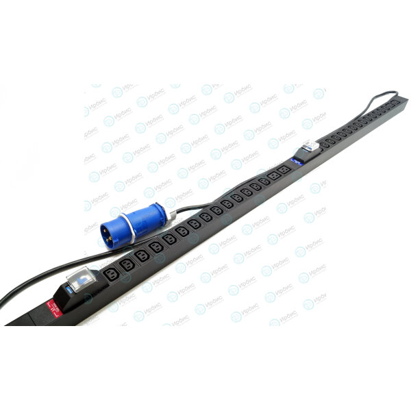 Hyperline SHE-28IEC-4BIEC-B-2.5PVB Блок розеток, вертикальный, 28 розеток IEC320 C13, 4 розетки IEC320 C19, автоматический выключатель, кабель питания 2.5м (3х4.0мм2) с вилкой IEC 60309 32A (2P+E), 250В, корпус алюминий, черный