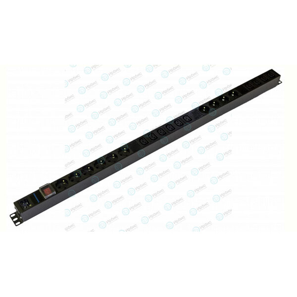 Блок розеток вертик. 10 гнезд (Schuko)+10 гнезд C13, 16A, с LED выкл.,чер.,без каб., DANNMAN 7000010