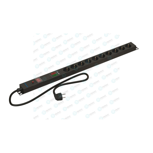Блок розеток вертик. 10 гнезд (Schuko), 16A, с LED выкл., черный, кабель 2,5м, DANNMAN 7000490