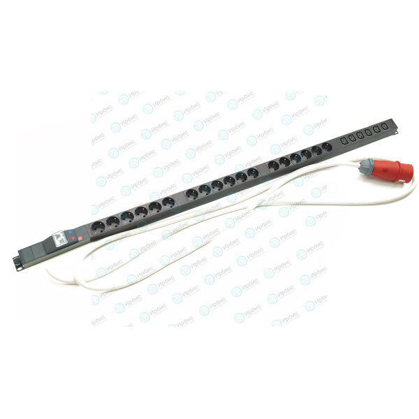Блок розеток вертик. 18 гнезд (Schuko)+6 гнезд, вход C13, 32A, черный, кабель 3м, DANNMAN 7191860