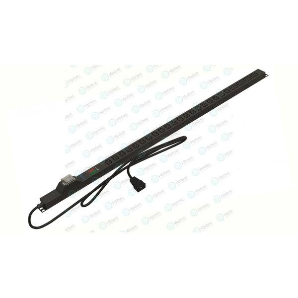 Блок розеток вертик. 20 гнезд C13+4 гнезда C19, 16A, черный, кабель 2,5м, DANNMAN 7001000