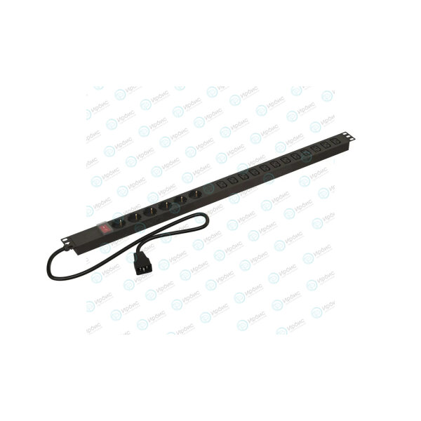 Блок розеток вертик. 12 (Schuko)+6 гнезд, C20, 16A, с LED выкл, каб.2,5м, Hyperline SHE-6SH-12IEC-S-2.5AIEC