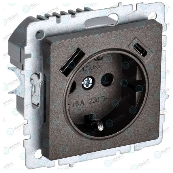 BRITE Розетка 1-местная с заземлением с защитными шторками 16А с USB A+C 18Вт РЮш11-1-БрТБ темная бр