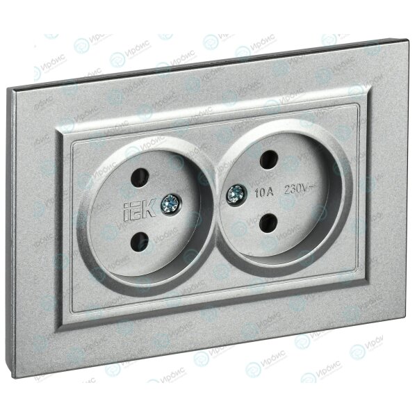 BRITE Розетка 2-местная без заземления с защитными шторками 10А в сборе РСш12-2-БрА алюминий IEK