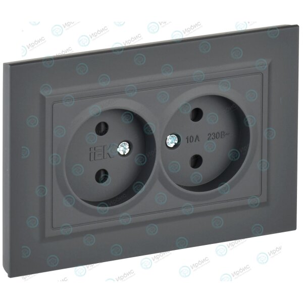 BRITE Розетка 2-местная без заземления с защитными шторками 10А в сборе РСш12-2-БрГ графит IEK
