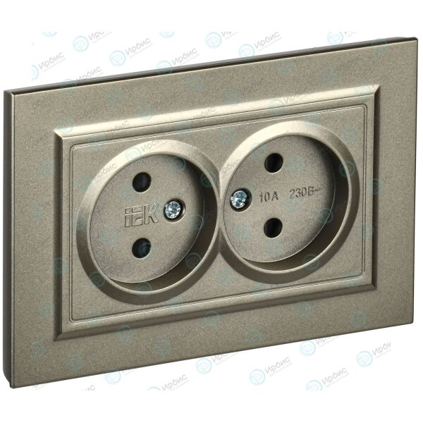 BRITE Розетка 2-местная без заземления с защитными шторками 10А в сборе РСш12-2-БрШ шампань IEK