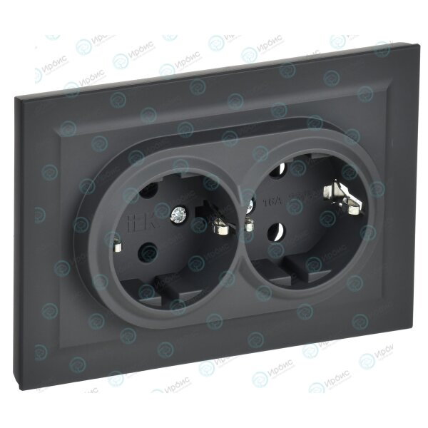 BRITE Розетка 2-местная с заземлением без защитных шторок 16А в сборе РС12-3-БрГ графит IEK