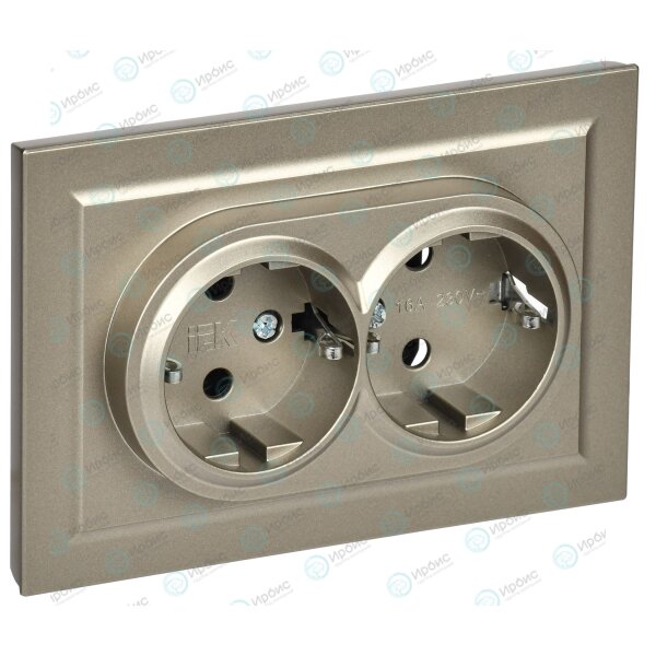 BRITE Розетка 2-местная с заземлением без защитных шторок 16А в сборе РС12-3-БрШ шампань IEK