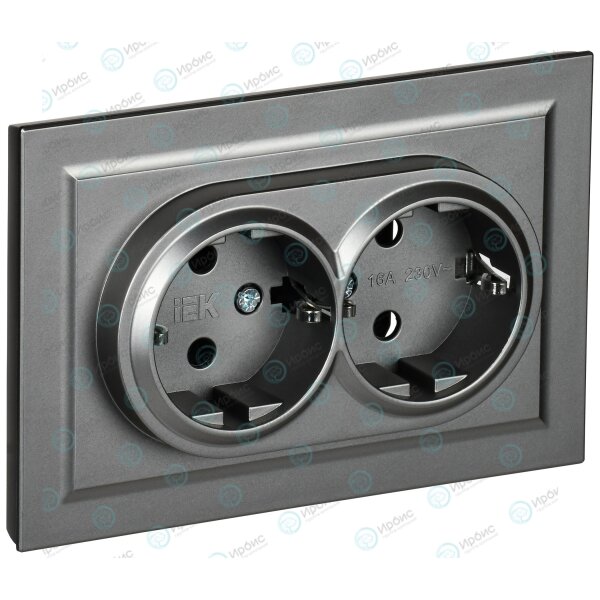 BRITE Розетка 2-местная с заземлением без защитных шторок 16А в сборе РС12-3-БрС сталь IEK