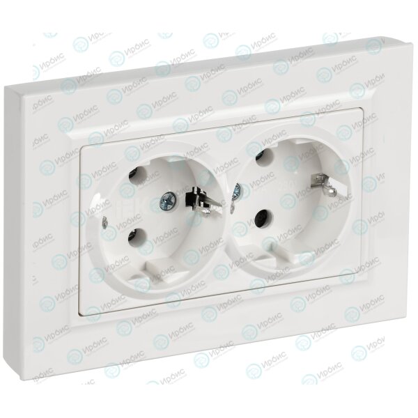 BRITE Розетка 2-местная с заземлением без защитных шторок плоская 16А в сборе РСПл12-3-БрБ белый IEK