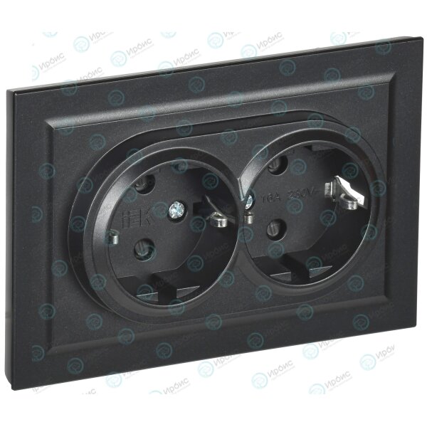 BRITE Розетка 2-местная с заземлением с защитными шторками 16А в сборе РСш12-3-БрЧ черный IEK