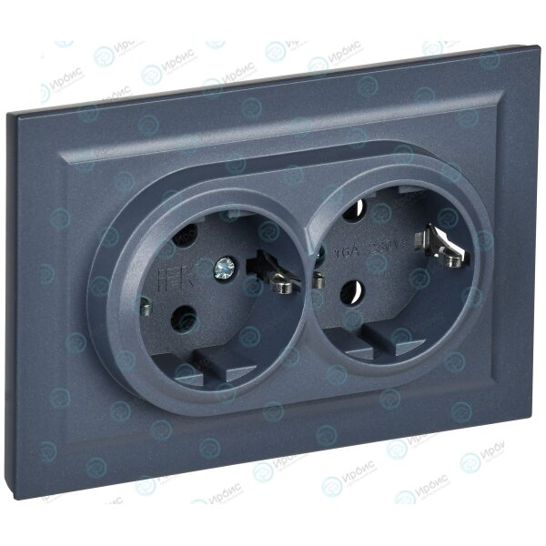 BRITE Розетка 2-местная с заземлением с защитными шторками 16А в сборе РСш12-3-БрМ маренго IEK