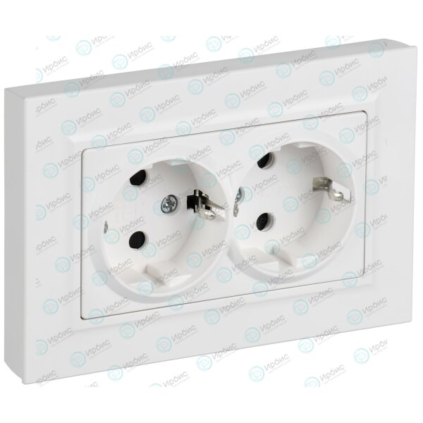BRITE Розетка 2-местная с заземлением с защитными шторками плоская 16А в сборе РСшПл12-3-БрАБ арктич