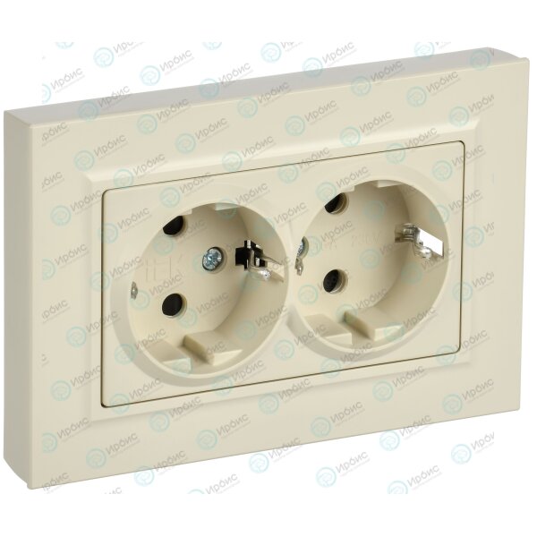 BRITE Розетка 2-местная с заземлением с защитными шторками плоская 16А в сборе РСшПл12-3-БрКр бежевы