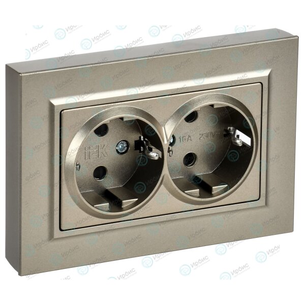 BRITE Розетка 2-местная с заземлением с защитными шторками плоская 16А в сборе РСшПл12-3-БрШ шампань