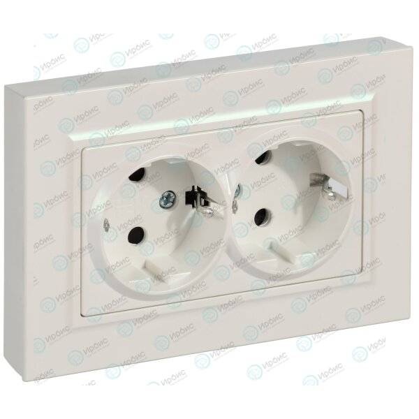 BRITE Розетка 2-местная с заземлением с защитными шторками плоская 16А в сборе РСшПл12-3-БрЖ жемчуг