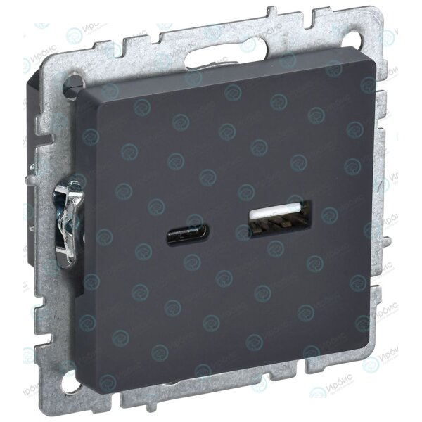 BRITE Розетка USB A+C 18Вт РЮ11-1-БрГ графит IEK