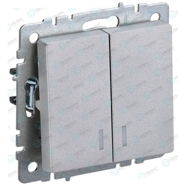 BRITE Выключатель 2-клавишный с индикацией 10А ВС10-2-1-БрА алюминий IEK
