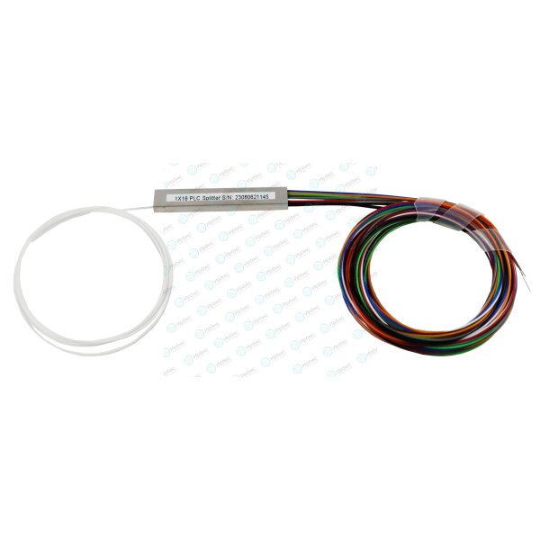 Оптоволоконный делитель 1х16 PLC без разъемов (не оконцованный), представляет собой планарное устройство деления оптической мощности, широко используемое в пассивных оптических сетях PON, имея компактные размеры может устанавливаться в муфтах, занимая минимум пространства.