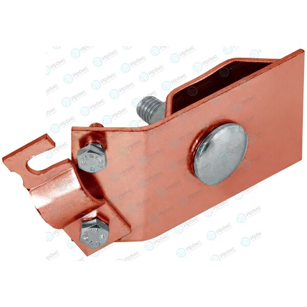 Держатель проводника круглого 6-10мм для водосточного желоба предназначен для крепления круглых проводников на водосточный желоб. Крепление осуществляется при помощи болтового соединения. Материал корпуса - медь.