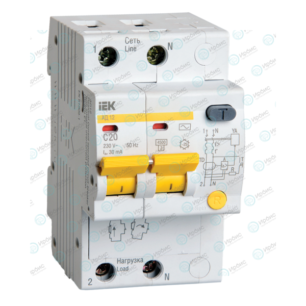 Автомат дифференциальный АД12 2Р 20А 30мА, IEK MAD10-2-020-C-030