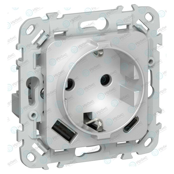 FLITE Розетка 1-местная с заземлением с защитными шторками 16А с USB A+C 20Вт РСЮшс11-0-ФлА алюминий