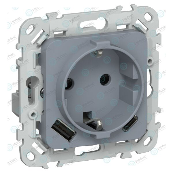FLITE Розетка 1-местная с заземлением с защитными шторками 16А с USB A+C 20Вт РСЮшс11-0-ФлМ маренго