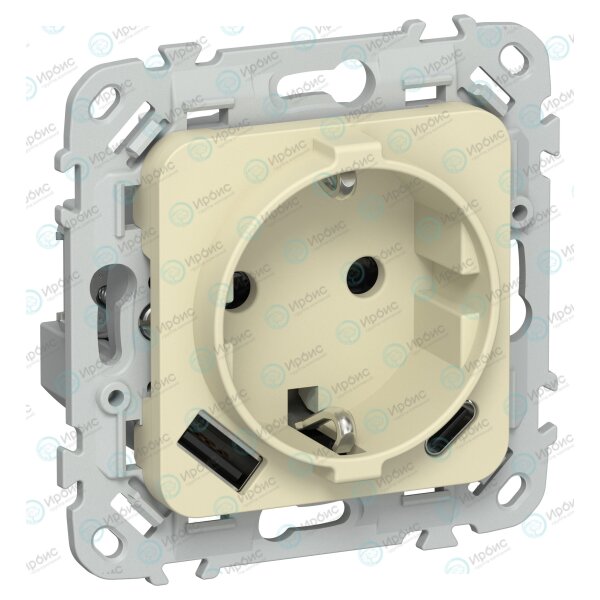 FLITE Розетка 1-местная с заземлением с защитными шторками 16А с USB A+C 20Вт РСЮшс11-0-ФлН навахо I