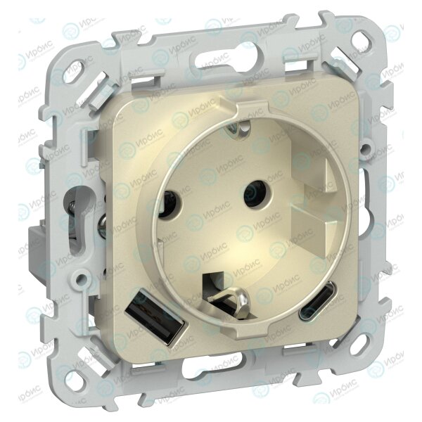 FLITE Розетка 1-местная с заземлением с защитными шторками 16А с USB A+C 20Вт РСЮшс11-0-ФлШ шампань