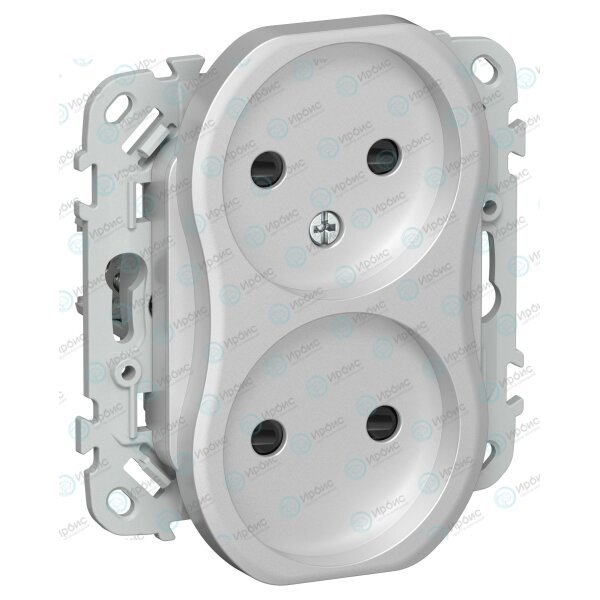 FLITE Розетка 2-местная без заземления с защитными шторками безвинтовое крепление 10А РСш02-1-ФлА ал