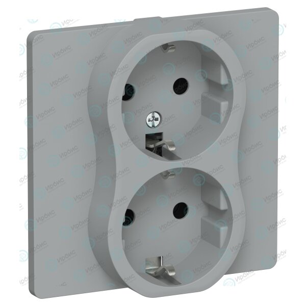 FLITE Розетка 2-местная с заземлением без защитных шторок безвинтовое крепление 16А РС12-1-К-ФлС сер