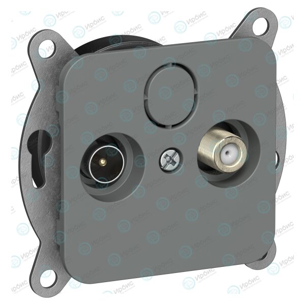 FLITE Розетка 2-местная TV+SAT экранированная проходная РТВс-2-1-2-ФлМА мокрый асфальт IEK