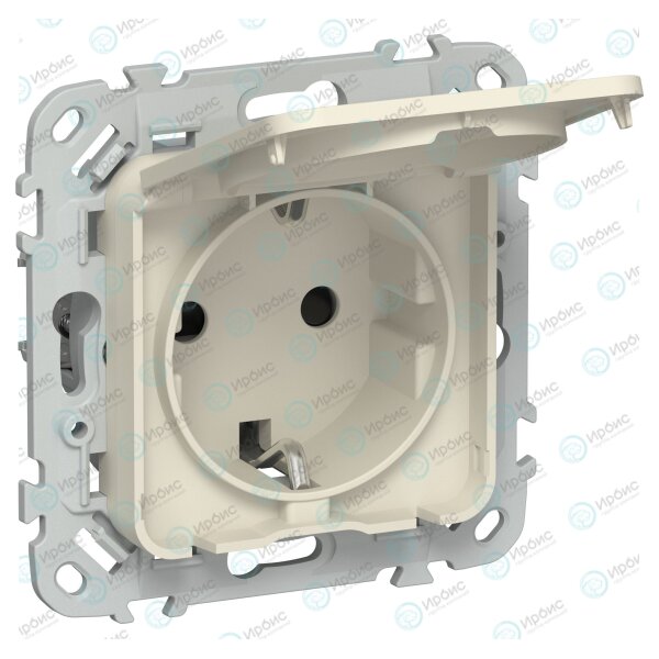 FLITE Розетка с заземлением с защитными шторками и крышкой 16А IP44 РСшкр11-0-44-ФлСл сливочный IEK