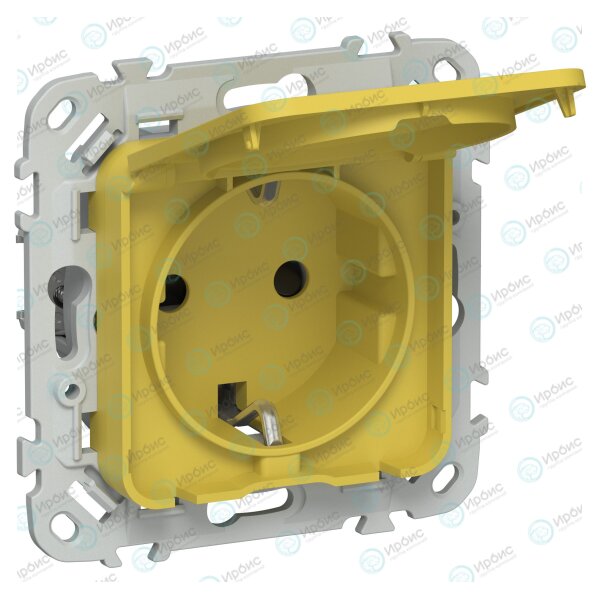 FLITE Розетка с заземлением с защитными шторками и крышкой 16А IP44 РСшкр11-0-44-ФлЖК желтый карри I