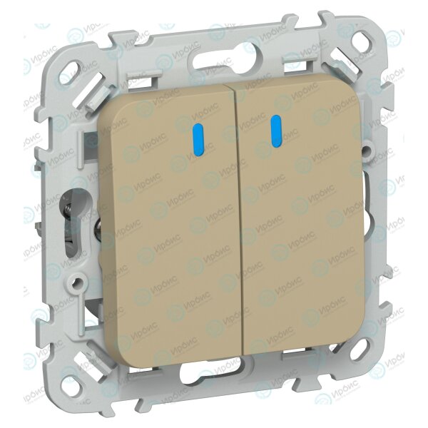 FLITE Выключатель 2-клавишный кнопочный с индикацией 10А ВС12-2-1-ФлХ хаки IEK