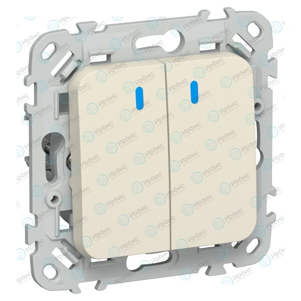 FLITE Выключатель 2-клавишный кнопочный с индикацией 10А ВС12-2-1-ФлСл сливочный IEK