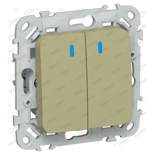 FLITE Выключатель 2-клавишный проходной с индикацией 10А ВС62-1-1-ФлО оливковый IEK