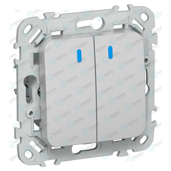 FLITE Выключатель 2-клавишный с индикацией 10А ВС12-1-1-ФлА алюминий IEK