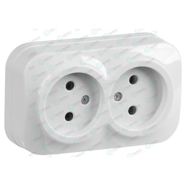 GLORY Розетка 2-местная для открытой установки без заземления без защитных шторок 10А РС22-2-ХБ белы
