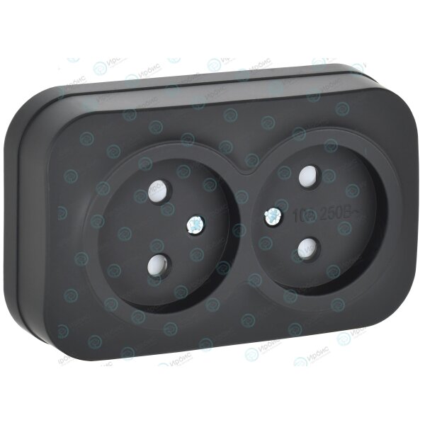 GLORY Розетка 2-местная для открытой установки без заземления с защитными шторками 10А РСш22-2-ХЧм ч
