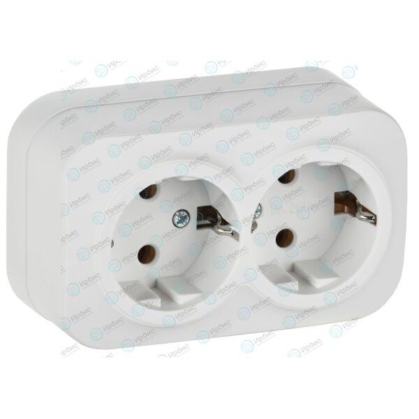 GLORY Розетка 2-местная для открытой установки с заземлением без защитных шторок 16А РС22-3-ХБм белы