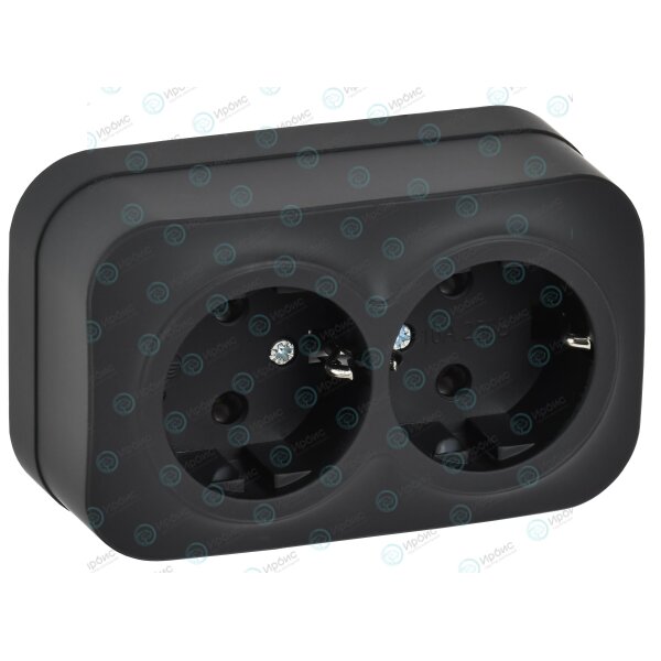 GLORY Розетка 2-местная для открытой установки с заземлением без защитных шторок 16А РС22-3-ХЧм черн